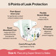 - True Absorb Core: unique, super-absorbent, multi-layer technology that quickly locks away moisture from skin; holds 17x its weight in fluid for advanced leak protection