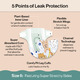 - True Absorb Core: unique, super-absorbent, multi-layer technology that quickly locks away moisture from skin; holds 17x its weight in fluid for advanced leak protection