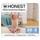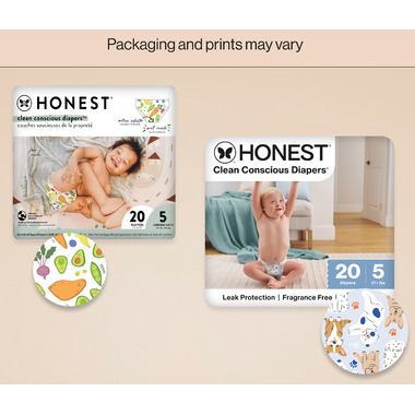 The Honest Company eco-friendly diapers offer advanced leak protection, cloud-like comfort and stylish prints that keep your baby dry, comfy, and happy on life's daily adventures. They are designed with safe, plant-based materials, a wetness indicator (so you know when it’s time for a fresh one), enhanced blowout protection, and advanced absorption for dry, healthy-looking booties. Plus, a secure, comfy fit for less sag + more swag.