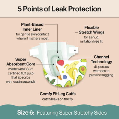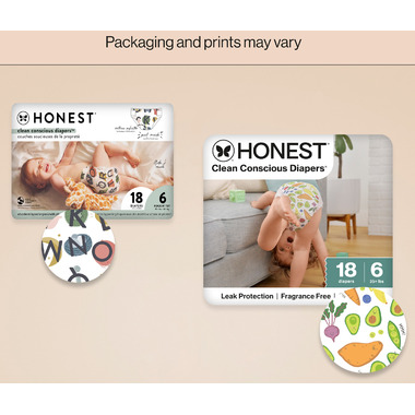 The Honest Company eco-friendly diapers offer advanced leak protection, cloud-like comfort and stylish prints that keep your baby dry, comfy, and happy on life's daily adventures. They are designed with safe, plant-based materials, a wetness indicator (so you know when it’s time for a fresh one), enhanced blowout protection, and advanced absorption for dry, healthy-looking booties. Plus, a secure, comfy fit for less sag + more swag.