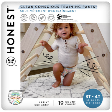 Make the potty-training process a breeze with Honest's Clean Conscious Training Pants. Featuring a Bio-based core with sustainably harvested fluff pulp, plant derived materials, and designed to be easy for your toddler to pull on and off- there soft, cozy plus super absorbent must-haves make the transition to the toilet as smooth a possible for everyone. With day or night protection built in and so many adorable prints and styles to choose from, your lil' one will feel cute, confident and ready.