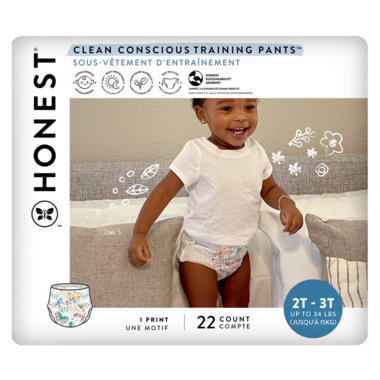 Make the potty-training process a breeze with Honest's Clean Conscious Training Pants. Featuring a Bio-based core with sustainably harvested fluff pulp, plant derived materials, and designed to be easy for your toddler to pull on and off- there soft, cozy plus super absorbent must-haves make the transition to the toilet as smooth a possible for everyone. With day or night protection built in and so many adorable prints and styles to choose from, your lil' one will feel cute, confident plus ready.