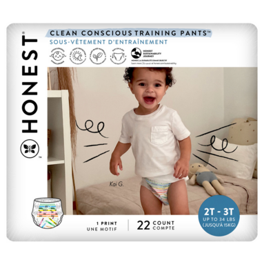 Make the potty-training process a breeze with Honest's Clean Conscious Training Pants. Featuring a Bio-based core with sustainably harvested fluff pulp, plant derived materials, and designed to be easy for your toddler to pull on and off- there soft, cozy plus super absorbent must-haves make the transition to the toilet as smooth a possible for everyone. With day or night protection built in and so many adorable prints and styles to choose from, your lil' one will feel cute, confident and ready.
