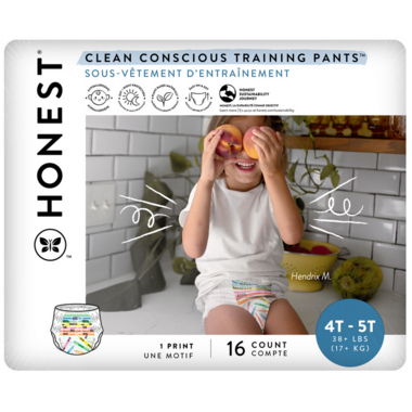 Make the potty-training process a breeze with Honest's Clean Conscious Training Pants. Featuring a Bio-based core with sustainably harvested fluff pulp, plant derived materials, and designed to be easy for your toddler to pull on and off- there soft, cozy plus super absorbent must-haves make the transition to the toilet as smooth a possible for everyone. With day or night protection built in and so many adorable prints and styles to choose from, your lil' one will feel cute, confident and ready.