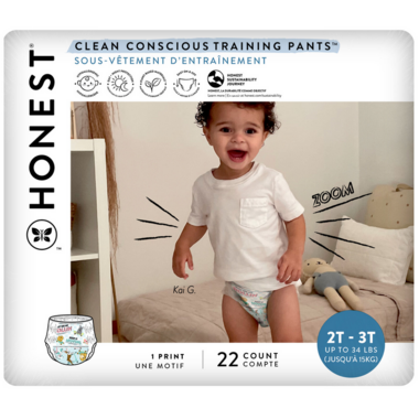 Make the potty-training process a breeze with Honest's Clean Conscious Training Pants. Featuring a Bio-based core with sustainably harvested fluff pulp, plant derived materials, and designed to be easy for your toddler to pull on and off- there soft, cozy plus super absorbent must-haves make the transition to the toilet as smooth a possible for everyone. With day or night protection built in and so many adorable prints and styles to choose from, you lil' one will fell cute, confident plus ready.