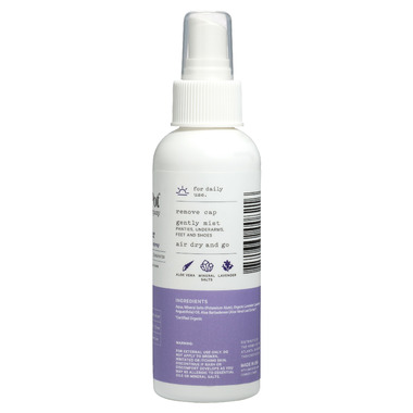 A soothing herbal mist, made with mineral salts to eliminate odor and lavender essential oils to keep you feeling calm and refreshed throughout the day. For use on all your intimate areas.