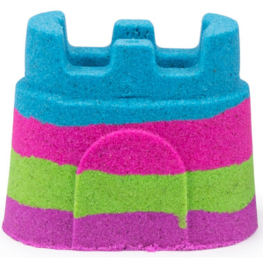 Mix, mold and create anything you can imagine with the Kinetic Sand Rainbow Unicorn Single Container! This 5oz castle container includes four colorful layers of Kinetic Sand – the original magical, moldable and mesmerizing sand. It flows through your hands and never dries out so you can play again and again. With a rainbow of Kinetic Sand colors (blue, green, purple and pink), you can squish it, mix it, cut it or mold it – the creative possibilities are endless!