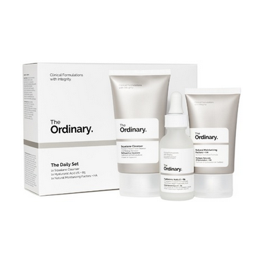 A set featuring The Ordinary's Squalane Cleanser, Hyaluronic Acid 2% + B5, and Natural Moisturizing Factors + HA.