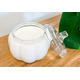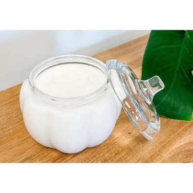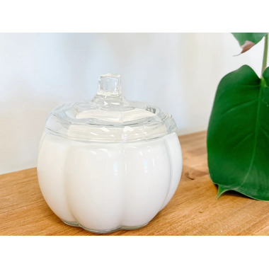Celebrate the season with this stunning 2-piece Glass Pumpkin Candle. The decorative glass lid lifts to reveal a hand-poured soy wax candle inside, blending cozy autumn fragrance with elegant fall decor. Perfect as a centerpiece, gift, or collectible keepsake for your favorite pumpkin lover. Reusable for seasons to come.