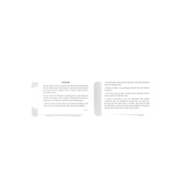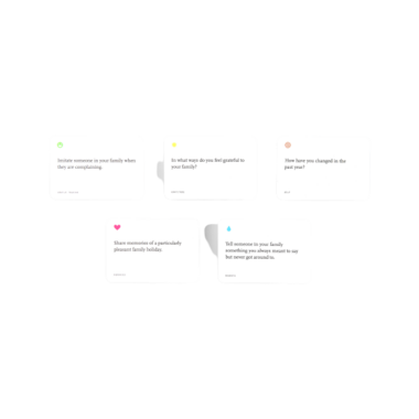 The game is expressly designed to help family gatherings live up to our highest hopes. Kick-start the best sorts of conversations: ones in which we reconnect, say things we always meant to, laugh warmly together – and remember why family counts.