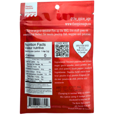 Smoked paprika, raw brown sugar, garlic powder, onion powder, sea salt, chili powder, black pepper, mustard.