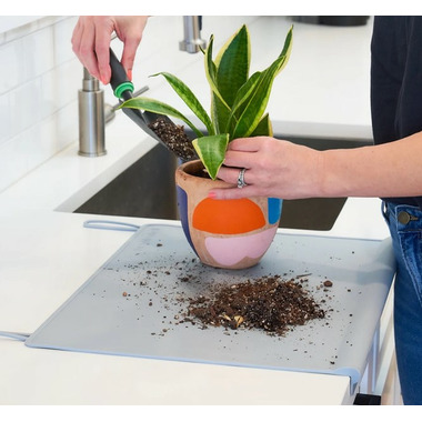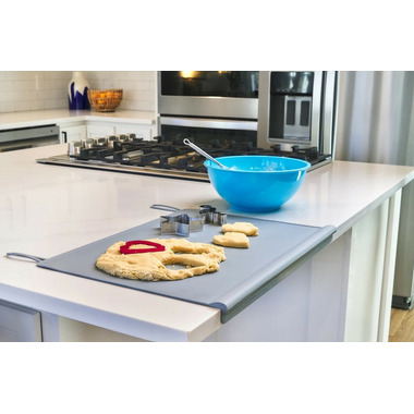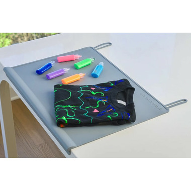 The Table Tyke XL is not just a placemat; it's a game-changer designed with both functionality and fun in mind. The Table Tyke XL is the perfect companion for the kitchen & activities. It is mess-free and a catalyst for early learning. The unique bumper not only protects from bumps but it catches spills - ideal for activities like painting, play dough, slime, crafting, tools, camping, cooking and baking! Stores easily: Simply roll the mat and pull the over each end.