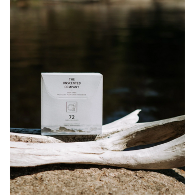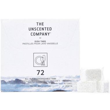 Meet The Unscented Company's brand new generation of ecodesigned Dish Tabs! With their super concentrated formula, these ecodesigned tabs are even more efficient than ever before! A fresh take on grease. A pre-soaking, cleaning and rinsing agent all in one, these Dish Tabs scrub away food residue and leave dishes and glasses sparkling.