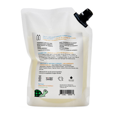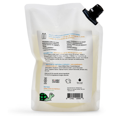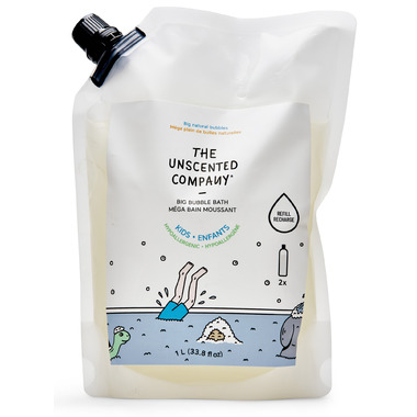If you're going to go bubbly, go big! Turn bath time into an adventure where every happy bubble is a chance for every child to imagine something wonderful. The Unscented Company's hypoallergenic bubble bath is made from 90.72% natural ingredients, fragrance free, and dye free. Let your little ones jump in worry free so they can enjoy some good natural fun without a care in the world. It feels so good that you might even want to try it for yourself. Just make sure you have an extra towel for happy splashes. Plus, each convenient refill bag eliminates two plastic bottles in our children's environment. Neat!