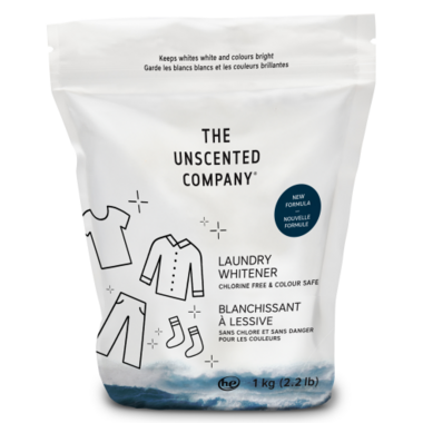 The Unscented Company Laundry Whitener keeps whites white and colours bright. It's 100% sodium percarbonate, a natural and eco-friendly bleaching agent that's non-toxic for humans or the planet.