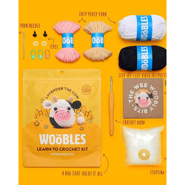 From beginner to pro, start your crochet adventure with The Woobles adorable pals with Step-by-step video tutorials and The Woobles Easy Peasy Yarn that is pre-started for you! Leftie or a Rightie? You're covered! Final Size will vary depend on tightness of stitch.