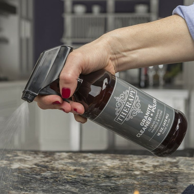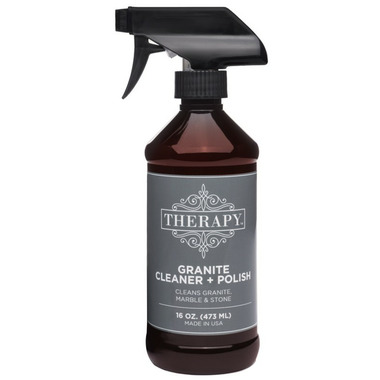 Therapy Granite Cleaner + Polish Instantly cleans and protects all your stone surfaces including: granite, marble, quartz, onyx, and any non-porous countertop. This powerful cleaner dissolves grease, oil, and grime while leaving behind a brilliant mirror-like finish.