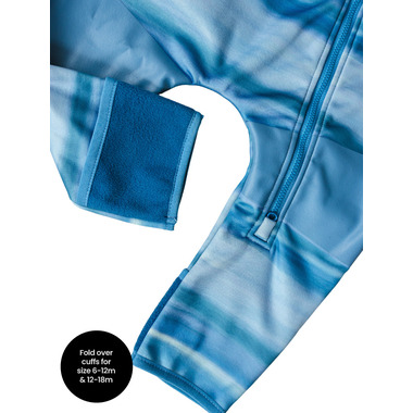This cozy onesie combines soft fleece with a full weather protective waterproof & windproof outer shell. A comfortable, all-in-one with a soft and stretchy feel, bonded with ultra-soft microfleece lining for warmth. From crawlers through to walkers, this versatile suit is an ideal choice in chilly, rainy, or snowy conditions.