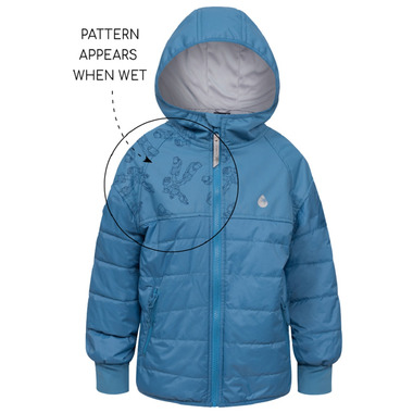 Therm's Hydracloud features a full waterproof (hydra) and windproof outer combined with ultra-soft cloud-like comfort. Providing midweight warmth and protection in wind, rain and snow, and lined with soft-touch jersey mesh for a cozy feel inside. And when the puffer gets wet, a secret pattern is revealed! See the SplashMagic pattern appear in the rain then disappear again when dry. Fun for toddler and big kids alike!