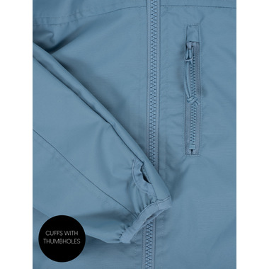 - Elasticated cuffs with thumbholes to cover hands in rain and wind.