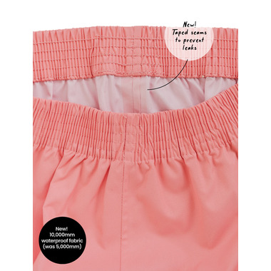 Durable, waterproof shell pant, perfect for puddle-jumping! Robust, elasticated design is easy to slip over regular clothing to protect against wind and rain.