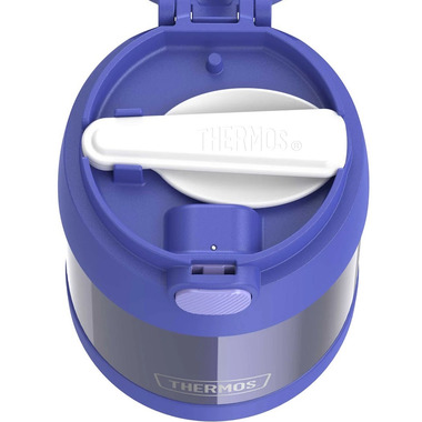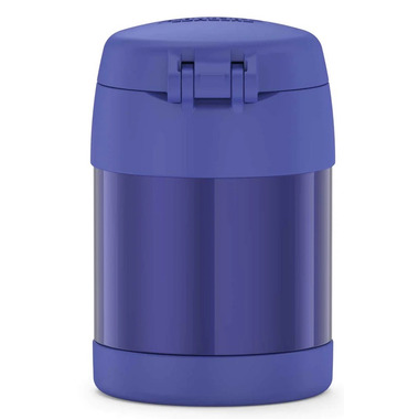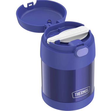 The FUNtainer Food Jar from Thermos brand is vacuum insulated to keep hot foods hot and cold foods cold-and since it's designed for kids it's also colourful and fun. Send them to school with their favourite soup so they can enjoy it fresh and hot at lunch time. If they're in the mood for a cold snack, pack it up with yogurt and berries, or apples and peanut butter. The FUNtainer food jar is light weight and compact with a push button lid so it's easy to carry and open. To clean, you can pop your FUNtainer food jar in the dishwasher; however washing by hand is recommended. Spoon included.