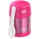 The FUNtainer Food Jar from Thermos brand is vacuum insulated to keep hot foods hot and cold foods cold-and since it's designed for kids it's also colourful and fun. Send them to school with their favourite soup so they can enjoy it fresh and hot at lunch time. If they're in the mood for a cold snack, pack it up with yogurt and berries, or apples and peanut butter. The FUNtainer food jar is light weight and compact with a push button lid so it's easy to carry and open. To clean, you can pop your FUNtainer food jar in the dishwasher; however washing by hand is recommended. Spoon included.