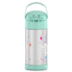 The FUNtainer Vacuum Insulated Stainless Steel Water Bottle with Straw keeps drinks cold for up to 12 hours. The double wall stainless steel construction is built to handle drops, dings and assorted roughhousing. Includes an integrated carry handle with soft-touch grip, making it easy for kids to carry with them throughout the day. Help keep germs away with the hygienically covered silicone straw which is removable for easy cleaning. To clean, you can pop your FUNtainer water bottle in the dishwasher; however hand washing is recommended. Not for use with hot liquids.
