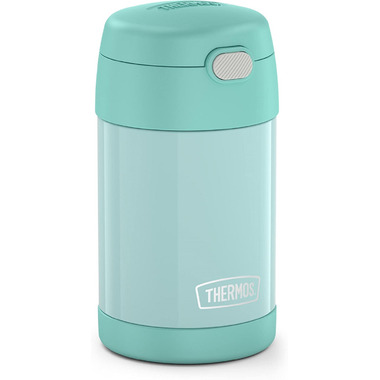 The FUNtainer Food Jar from Thermos brand is vacuum insulated to keep hot foods hot and cold foods cold-and since it's designed for kids it's also colourful and fun. Send them to school with their favourite soup so they can enjoy it fresh and hot at lunch time. If they're in the mood for a cold snack, pack it up with yogourt and berries, or apples and peanut butter. The FUNtainer food jar is light weight and compact with a push button lid so it's easy to carry and open. To clean, you can pop your FUNtainer food jar in the dishwasher; however washing by hand is recommended. Spoon included.
