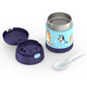 The 290mL FUNtainer Food Jar from Thermos brand is vacuum insulated to keep hot foods hot for 7 hours and and cold foods cold for 5 hours. Send them to school with their favorite soup so they can enjoy it fresh and hot at lunch time. If they're in the mood for a cold snack, pack it up with yogurt and berries, or apples and peanut butter. The FUNtainer food jar is lightweight and compact with a push button lid so its easy to carry and open. To clean, you can pop your FUNtainer food jar in the dishwasher; however washing by hand is recommended. Spoon included.