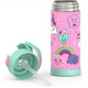 - KID-FRIENDLY DESIGN: Choose from a variety of fun colors or patterns! This water bottle is lightweight and compact with a push button lid so it's easy to carry and open. The integrated carry handle features a soft touch grip
