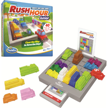 With 40 challenges from easy to expert, Rush Hour Jr has delighted and engaged kids and adults with screen-free mind sharpening logic puzzles. Move the cars to free the Red Car Fire Chief from the traffic jam!