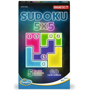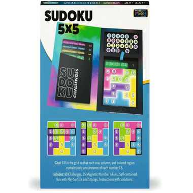 Tired of the same old Sudoku puzzles? Elevate your puzzle-solving experience with their Colourful and Shapely Sudoku Magnetic Travel Game! Arrange the colours, numbers, and shapes to solve each puzzle. Perfect for on the go wherever you go, Sudoku 5x5 does away with boring pen and paper sudoku and bring an exciting colour challenge to shape the minds in all way. With 40 challenges with progressive difficulty, the game is perfect for new gamers or seasoned Sudoku players. Elevate your Sudoku game today and embrace the world of numbers, colours, and shapes in a whole new light! Contents 60 Challenges (30 Double-Sided Challenge Cards), 25 Magnetic Number Tokens, Self-contained box with play surface and storage, Instructions with Solutions