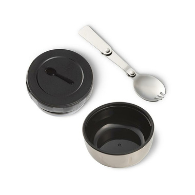 The insulated, stainless steel GO4TH Container keeps food hot for 4 hours or cold for up to 8 hours, making it the perfect travel container. The dual, screw lid system keeps and maintains temperature while it controls and prevents leakage. Throw into any bag without fear of spillage. A built-in, folding spork securely snaps into the lid ensuring that a utensil is always available.