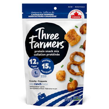 Roasted Fava beans, Pea Puffs (Pea protein concentrate, Tapioca Starch), Fava Crisps (Fava Bean flour, Pea protein, Carrot Fibre, Mixed Tocopherols), Pretzels (Enriched Wheat Flour, Malt, Salt, Soybean Oil), Avocado oil, Seasoning (sugars [sugar, cane sugar], salt, potato starch, tomato powder, garlic powder, onion powder, natureal flavour, spice, citric acid, malic acid). Contains: Wheat and Barley