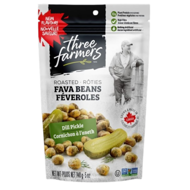 Grown and made in Canada. These roasted dill pickle fava beans are high in fibre, contain 13g of plant protein and are Non-GMO.