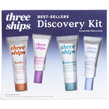 The Best-Sellers Discovery Kit is a quartet of Three Ships best-selling products for all skin types. These cleansing, hydrating and soothing products will help you achieve glowing and healthy skin. Packed with natural, plant-based ingredients for radiant results. If used daily, products last for approximately two weeks.