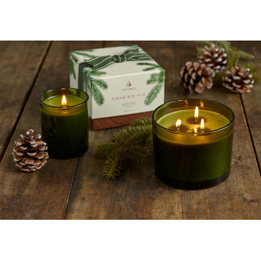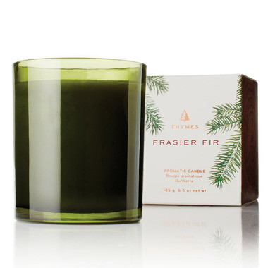 Enjoy the signature Frasier Fir's aromatic scent of Siberian Fir needles, heartening cedarwood and earthy sandalwood form a refreshing bed of crisp, just-cut forest fragrance that feels cozy and comforting with the Thymes Frasier Fir Poured Green Glass Candle.