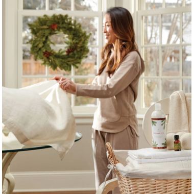 The Thymes Frasier Fir Fabric Softener has the aromatic snap of crisp Siberian fir needles, heartening cedarwood, and relaxing sandalwood combines, perfectly capturing this just-cut forest scent, bringing the outdoors in. Thymes' naturally-derived, cruelty-free fabric softener will leave your sheets feeling soft and static free.