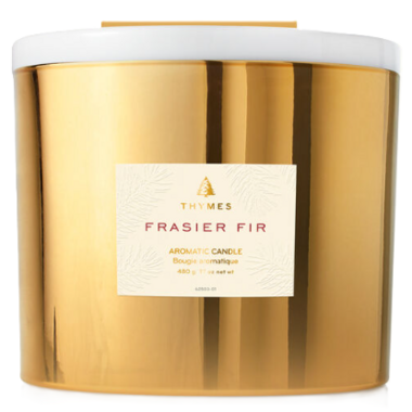The elegant glow of gold makes this 3-wick statement piece the perfect way to experience the iconic mountain fresh fragrance of Frasier Fir.