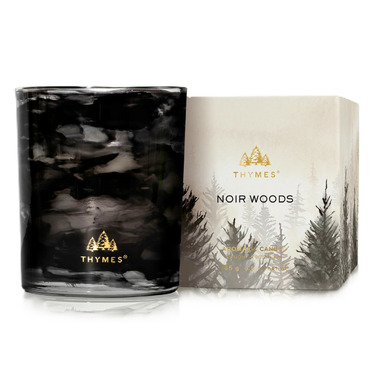 Create a sense of calm, comfort, and quiet luxury with the Thymes Noir Woods Aromatic Candle. This 6.5 oz candle offers up to 40 hours of burn time—perfect for slow mornings, cozy evenings, and everything in between. The fragrance blends smoky wood, fresh evergreen, and golden amber to bring a grounding, elevated feel to any room. Housed in a black and grey vessel with warm gold accents, the design evokes smoke and soft, glowing light—bringing beauty to every burn.