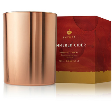 The Thymes Simmered Cider Poured Candle has an intoxicating aroma that fills the air with warmth and comfort. A simmering blend of freshly-pressed apples mulled with crushed clove and cardamom, with hints of bourbon and malted rum. It’s a rich, spicy scent that’s steeped in tradition. The Thymes Simmered Cider poured candle features a rose gold metallic finish.