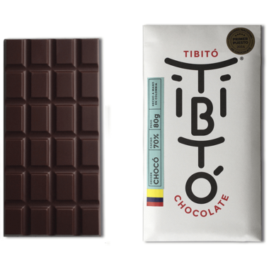 Tibito Columbian chocolate. Origin: Choco. Cacao: 70%. Flavour Profile: Caramel, combined with hazelnut, sugar cane and sweet ripe bananas.
