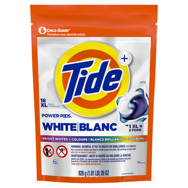 The #1 against stains and odors! Brightens whites without bleach. Twice the size of regular PODS for a better clean; Works in all types of machines and all kinds of water, hot or cold, hard or soft; A powerful Tide clean, even in cold water.