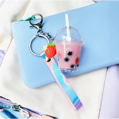 Tiger Tribe Bag Charm Kit Strawberry Bubble Tea