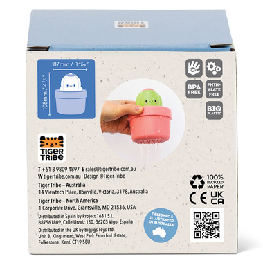 Kids and parents alike will get a kick out of this super cute cactus bath toy that pops up out of its hidey-hole when submerged in water! When removed from the tub, water will sprinkle out delightfully as it drains, and Cactus goes back into hiding again. This clever toy helps engage little ones during bath time with its peekaboo routine, as it promotes open ended sensory play while teaching early learners cause-and-effect and helping to build gross motor skills. Cactus character Water sprinkles out of drainage holes as Cactus hides again when removed from water
