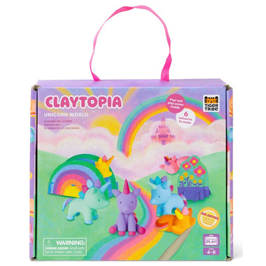Includes: Air-drying Super Clay to make 6 Unicorn figures (10 colours), 1 bioplastic sculpting tool, 2 sheets of pop-out scene accessories, Built-in diorama scene, Visual instructions.