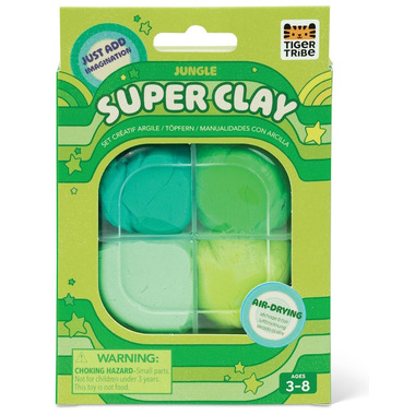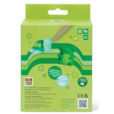 Includes: 4 Super Clay colours (Greens) Bioplastic clay sculpting tool Step-by-step visual instructions to create 2x characters (Frog and Turtle) Resealable container for mess-free fun that lasts.