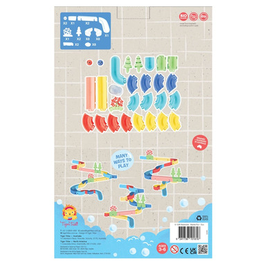 Little ones will love designing and constructing their own miniature waterslide marble run with this interactive bath toy. This unique and engaging toy is rich in STEAM benefits for early learners, and helps to make bathtime fun! Level-up tub time while teaching cause and effect, and helping to develop little ones fine motor skills and hand-eye coordination. This product is part of our ECO range, created using bioplastic. All pieces and cups are easily attachable to bath or shower tiles, or windows for outdoor water play