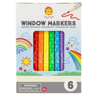 Turn windows and mirrors into a creative canvas with this fun set of six Window Markers. Let your imagination run wild, using these brightly coloured, fine tip window markers designed for colouring, drawing and writing messages on glass. And if you make a mistake simply wipe off and start again, providing hours of creative fun. Markers are kid safe, odour free and easily dry erase off glass and mirrors (with a tissue or cloth).